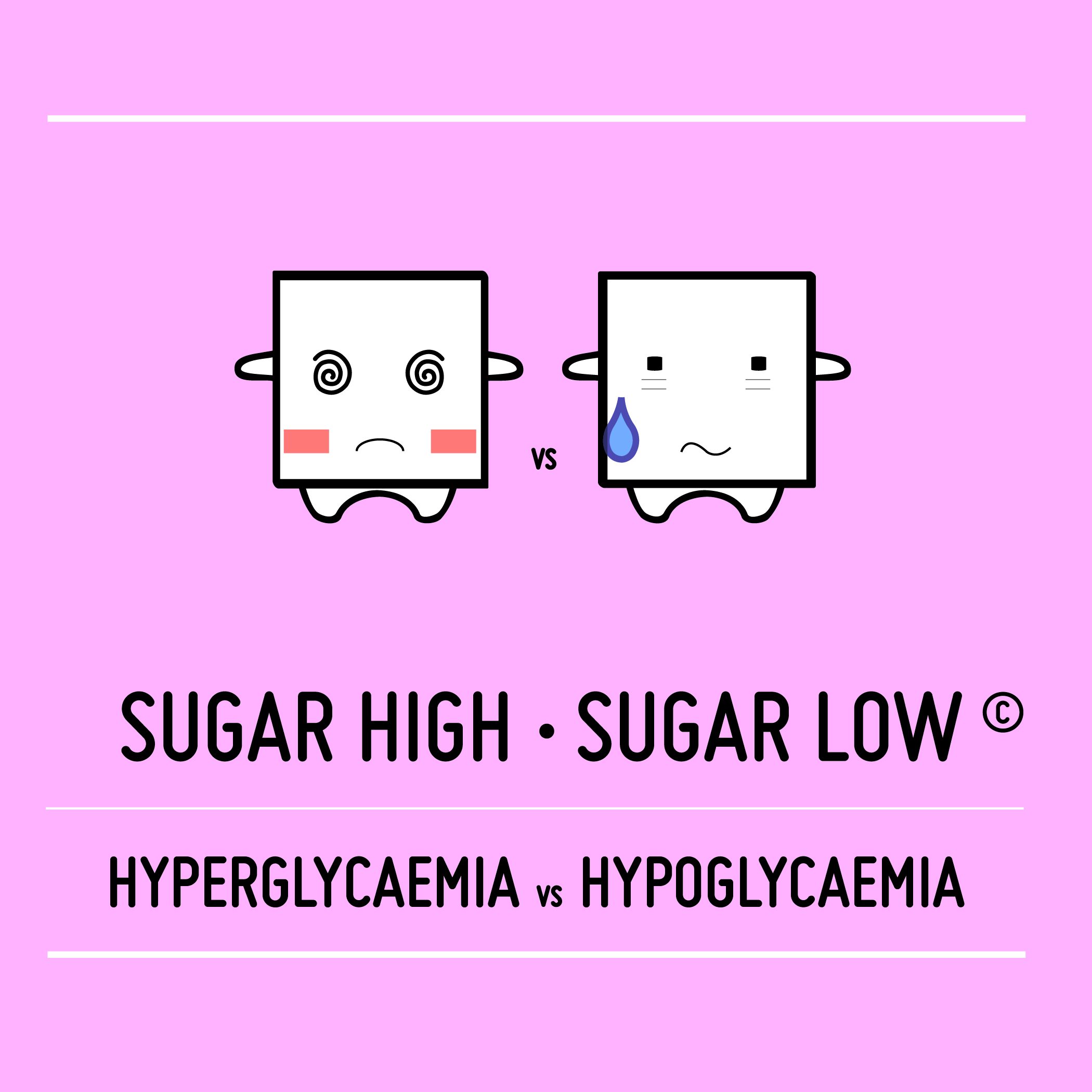 I’d love to see your perspective in the comments! What symptom’s do you have? How do they progress? Have they remained the same throughout your time with diabetes? Any Type II diabetics have you experienced any symptoms? If you’re not diabetic, have you ever experienced being with or around someone who has suffered a hypo/hyper? Are you able to recognise that the person is experiencing a hypo/hyper? Maybe by a change in their mood, expression, or the way they are talking etc?