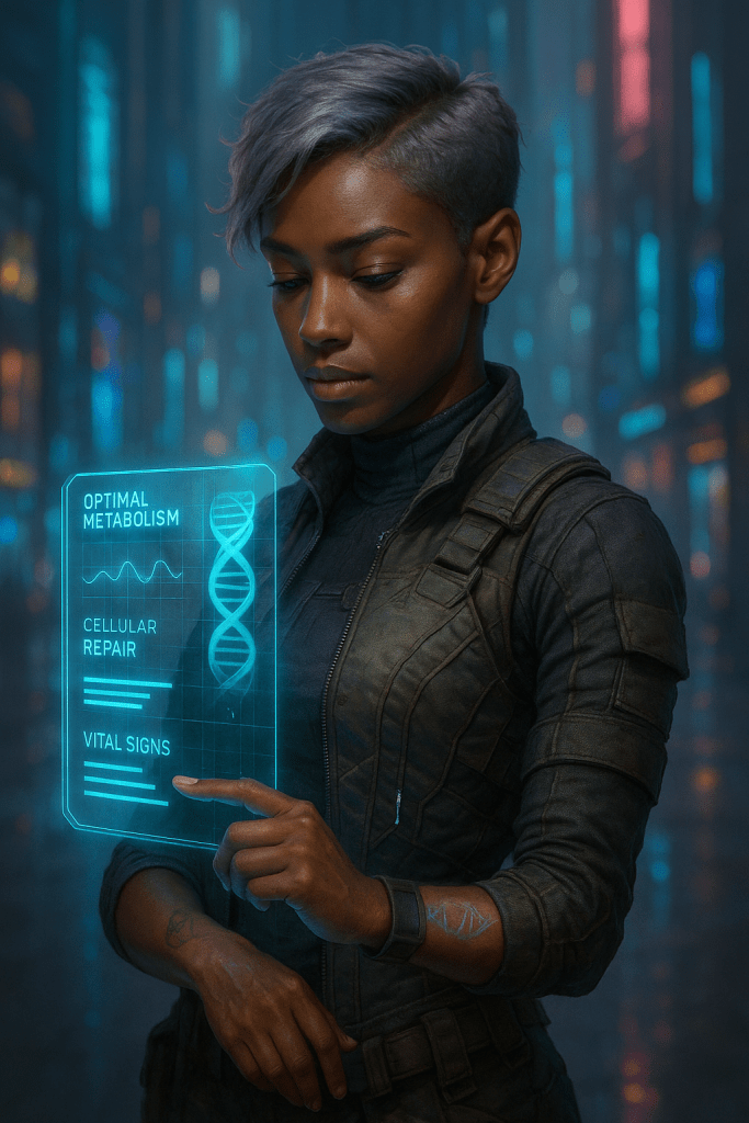 From birth, nanobots powered by Auralith-1 coursed through her bloodstream, connected to her neural system via a refined NeuroSync interface. They monitored and modulated everything, immune response, glucose metabolism, tissue regeneration, preventing inflammation and adapting to environmental stressors before symptoms could even arise. All silently. All automatically, constantly keeping the body functioning at its optimal potential.